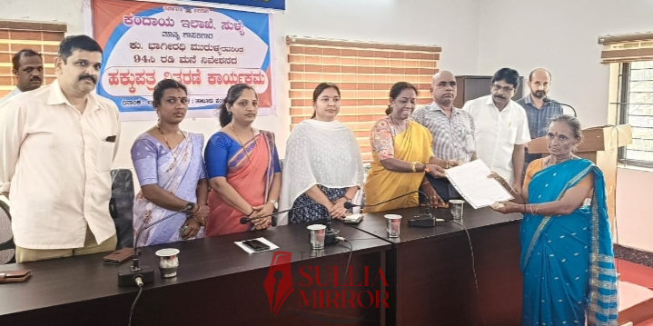 ಹಕ್ಕು ಪತ್ರ ವಿತರಿಸಲಾಯಿತು. ಶಾಸಕಿ ಭಾಗೀರಥಿ ಮುರುಳ್ಯ ಹಕ್ಕುಪತ್ರ ವಿತರಿಸಿ ಮಾತನಾಡಿದರು.ತಹಶೀಲ್ದಾರ್ ಮಂಜುಳ.ಎಂ. ಪ್ರಾಸ್ತಾವಿಕವಾಗಿ ಮಾತನಾಡಿದರು.ದ.ಕ. ಜಿಲ್ಲಾ ಪಂಚಾಯತ್ ಮಾಜಿ ಅಧ್ಯಕ್ಷ ವೆಂಕಟ್ ದಂಬೆಕೋಡಿ, ತಾಲೂಕು ಪಂಚಾಯತ್ ಮಾಜಿ ಅಧ್ಯಕ್ಷ ಮುಳಿಯ ಕೇಶವ ಭಟ್, ತಾಲೂಕು ಪಂಚಾಯತ್ ಕಾರ್ಯನಿರ್ವಹಣಾಧಿಕಾರಿ ರಾಜಣ್ಣ ಮಾತನಾಡಿದರು.