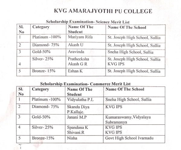 ವಾಣೀಜ್ಯ ವಿಭಾಗದಲ್ಲಿ ಶೇ.100(ಪ್ಲಾಟಿನಂ) ವಿಜೇತರು: ವಿಧುಲತ.ಪಿ.ಎಲ್, ಸ್ನೇಹ ಪ್ರೌಢ ಶಾಲೆ ಸುಳ್ಯ. ಶೇ.75(ಡಯಮಂಡ್)- ಸ್ಕಂದ ದಿಯಾ.ಪಿ.ಕಲ್ಲಾಜೆ, ಕೆವಿಜಿ ಐಪಿಎಸ್ ಸುಳ್ಯ.