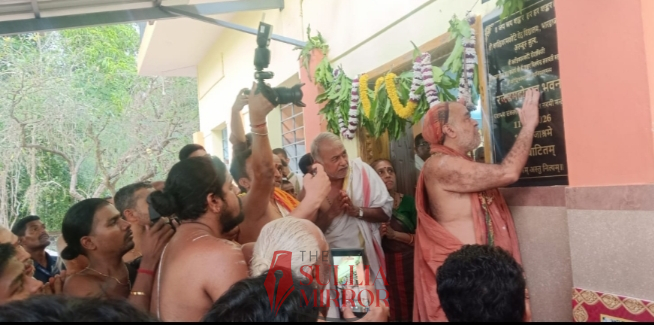 ನವೀಕೃತ ಶ್ರೀ ಕಾಂಚಿಕಾಮಕೋಟಿ ವೇದವಿದ್ಯಾಲಯವನ್ನು ಉದ್ಘಾಟಿಸಿ ಆಶೀರ್ವಚನ ನೀಡಿದರು.ನಾವು ಧರ್ಮವನ್ನು ರಕ್ಷಣೆ ಮಾಡಿದರೆ ಧರ್ಮ ನಮ್ಮನ್ನು ರಕ್ಷಣೆ ಮಾಡುತ್ತದೆ. ವಿದ್ಯಾರ್ಥಿಗಳು ವೈಜ್ಞಾನಿಕ, ರಾಜಕೀಯ, ಸಾಮಾಜಿಕ ಶಿಕ್ಷಣ ನೀಡುವ ಲೌಖಿಕ ಶಿಕ್ಷಣದ ಜೊತೆಗೆ ನಮ್ಮ ಧರ್ಮ, ಪುರಾಣ, ಸಂಸ್ಕೃತಿ, ಸಂಸ್ಕಾರ ಕಲಿಸುವ ಧಾರ್ಮಿಕ ಶಿಕ್ಷಣವನ್ನು ಪಡೆಯಬೇಕು. ವೇದಾಧ್ಯಯನ ಮಾಡುವುದು ಭಾರತದ ಸಂಸ್ಕೃತಿ ಎಂದ ಅವರು ಭಾರತೀಯ ಜೀವನ ಕ್ರಮ ವೇದ ಮಾರ್ಗದಲ್ಲಿ ಇರಬೇಕು. ಎಲ್ಲಾ ಸಂಪತ್ತಿಗಿಂತಲೂ ಧರ್ಮ ಮುಖ್ಯ. ಆದುದರಿಂದ ಮಾನವನ ಬದುಕು ಧರ್ಮ, ಸಂಪ್ರದಾಯ, ಸಂಸ್ಕೃತಿಯಿಂದ ಕೂಡಿರಬೇಕು ಎಂದು ಹೇಳಿದರು.