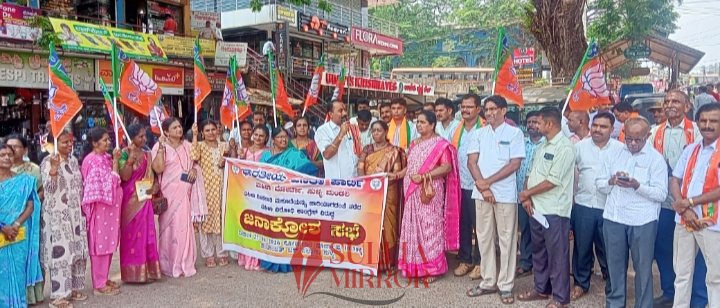 ಸುಳ್ಯ:ಲೋಕಸಭೆಯಲ್ಲಿ ಮಹಿಳಾ ಮೀಸಲಾತಿ ಮಸೂದೆ ಜಾರಿಯಾಗದಂತೆ ತಡೆದ ಕಾಂಗ್ರೆಸ್ ಮತ್ತು ಇತರ ವಿರೋಧ ಪಕ್ಷಗಳ ನಡೆಯನ್ನು ವಿರೋಧಿಸಿ ಬಿಜೆಪಿ ಮಹಿಳಾ ಮೋರ್ಚಾ ಮಂಡಲ ಸಮಿತಿ ವತಿಯಿಂದ ಸುಳ್ಯದಲ್ಲಿ ಪ್ರತಿಭಟನಾ ಸಭೆ ನಡೆಯಿತು. ಶಾಸಕಿ ಭಾಗೀರಥಿ ಮುರುಳ್ಯ, ಬಿಜೆಪಿ ಮಂಡಲ ಸಮಿತಿ ಅಧ್ಯಕ್ಷ ವೆಂಕಟ್ ವಳಲಂಬೆ, ಮಹಿಳಾ ಮೋರ್ಚಾ