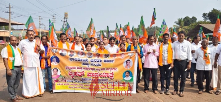 ಕಡಬ:ಬಿಜೆಪಿ ಸುಳ್ಯ ಮಂಡಲದ ವತಿಯಿಂದ ವಿ.ಬಿ. ಜಿ ರಾಮ್ ಜಿ ಯೋಜನೆ ಬಗ್ಗೆ ಜನಜಾಗೃತಿ ಮೂಡಿಸಲು ಹೊಸಮಠದಿಂದ ಕಡಬದವರೆಗೆ ಬೃಹತ್ ಪಾದಯಾತ್ರೆ ನಡೆಯಿತು.