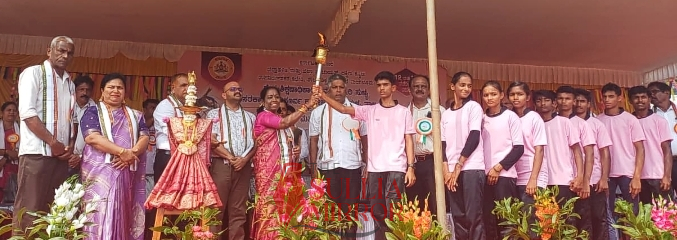 ಪಂಜ ಪೈಂದೋಡಿ ಶ್ರೀ ಸುಬ್ರಾಯ ಸ್ವಾಮಿ ದೇವಳದಿಂದ ವಿದ್ಯಾರ್ಥಿಗಳು ತಂದ ಕ್ರೀಡಾ ಜ್ಯೋತಿಯಿಂದ ದೀಪ ಬೆಳಗಿಸಿಶಾಸಕಿ ಭಾಗೀರಥಿ ಮುರುಳ್ಯ ಕ್ರೀಡಾಕೂಟ ಉದ್ಘಾಟಿಸಿದರು.