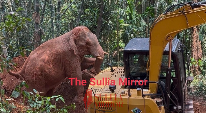 ಬಂತು. ಘೀಳಿಡುತ್ತಾ ಮೇಲೆ ಬಂದ ಸಲಗ ಕೆಳಕ್ಕೆ ಓಡಿತು. ಆನೆಯು ತೋಟದ ಕೆಳ ಭಾಗಕ್ಕೆ ಓಡಿದ್ದು ಕೆಲ ಕಾಲ ಆತಂಕ ಸೃಷ್ಠಿಸಿತು. ಬಾವಿಯಿಂದ ಮೇಲೆ ಬಂದಾಗ ಎದುರಿಗಿದ್ದ ಹಿಟಾಚಿಗೆ ಹಾದುಕೊಂಡು ಕೆಳ ಭಾಗಕ್ಕೆ ನುಗ್ಗಿತು.ಬಳಿಕ ಅರಣ್ಯ ಇಲಾಖೆಯ ಸಿಬ್ಬಂದಿಗಳು ಪಟಾಕಿ ಸಿಡಿಸಿ ಆನೆಯನ್ನು