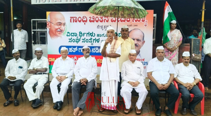 ಸುಳ್ಯ:ಸುಳ್ಯದ ಗಾಂಧಿ ಚಿಂತನೆ ವೇದಿಕೆಯ ವತಿಯಿಂದ ಗಾಂಧಿಜಯಂತಿ ಆಚರಣೆ ಸುಳ್ಯದಲ್ಲಿ ನಡೆಯಿತು. ಇದರ ಅಂಗವಾಗಿ ಸುಳ್ಯ ನಗರದಲ್ಲಿ ಗಾಂಧಿ ನಡಿಗೆ ಕಾರ್ಯಕ್ರಮ ನಡೆಯಿತು.ಜ್ಯೋತಿ ವೃತ್ತದಿಂದ ಗಾಂಧಿನಡಿಗೆ ಆರಂಭಗೊಂಡು ಗಾಂಧಿನಗರದ ತನಕ ಗಾಂಧೀ ನಡಿಗೆ ನಡೆಯಿತು.ಗಾಂಧಿ ಪ್ರತಿಮೆಗೆ ಮಾಲಾರ್ಪಣೆ ಮಾಡಿದ ಬಳಿಕ
