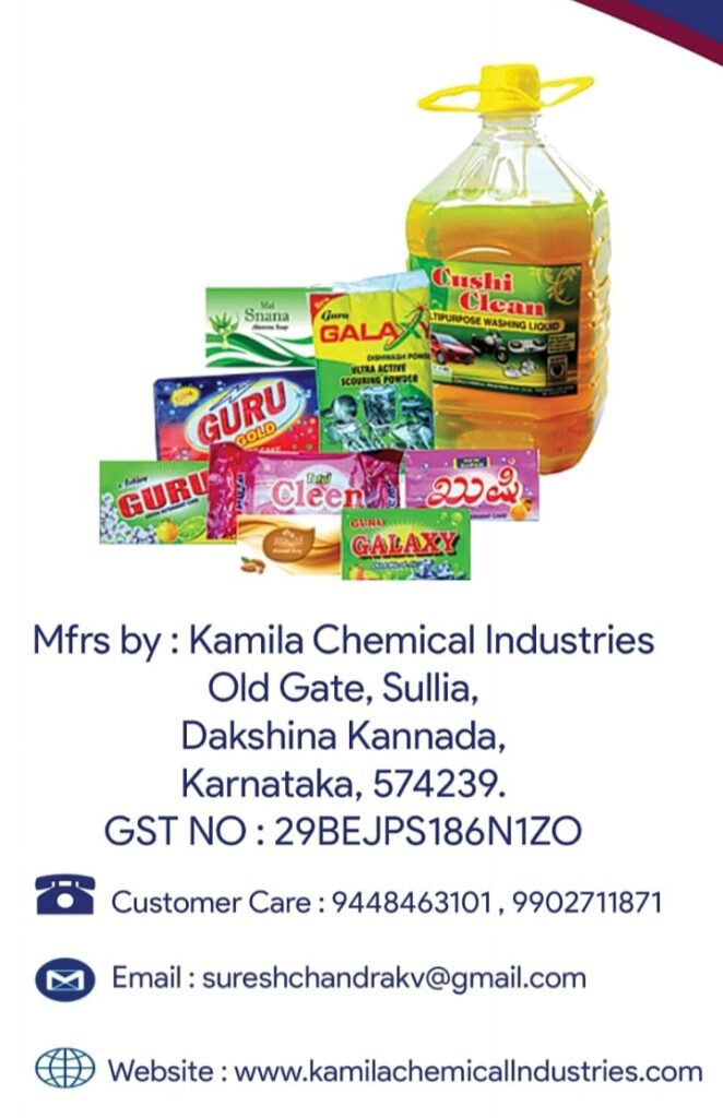 ಸುಳ್ಯ:ಸ್ವಚ್ಛತೆ ಎಂಬುದು ಮನುಷ್ಯನ ಬದುಕಿನ ಅವಿಭಾಜ್ಯ ಅಂಗ. ನಮ್ಮ ಬದುಕಿನ ಸ್ವಚ್ಚತೆಗೆ ಸದಾ ಹೊಸತನ್ನು ನೀಡುವ ಸುಳ್ಯದ ಕಮಿಲ ಕೆಮಿಕಲ್ ಇಂಡಸ್ಟ್ರೀಸ್ ದೀಪಾವಳಿ ಸಂದರ್ಭದ ನೂತನ ಕೊಡುಗೆಯಾಗಿ ‘ಗುರು ಡಿಟರ್ಜೆಂಟ್ ಲಿಕ್ವಿಡ್’ ಮಾರುಕಟ್ಟೆಗೆ ತಂದಿದೆ.4 ವಿಭಿನ್ನ ಬಗೆಯ ಪರಿಮಳ ಮತ್ರು 4 ವೈವಿಧ್ಯ ಬಣ್ಣದಲ್ಲಿ ಲಭ್ಯವಿದೆ. ಎರಡು ಲೀಟರ್ ಲಿಕ್ವಿಡ್ ಕೇವಲ 200 ರೂಗಳಿಗೆ ಲಭ್ಯವಿದೆ.ಸ್ವಚ್ಛತೆ ಎಂಬುದು ನಮ್ಮ ಪ್ರತಿ