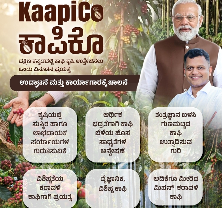 ಕೃಷಿಯಲ್ಲಿ ಸುಸ್ಥಿರ ಹಾಗೂ ಲಾಭದಾಯಕ ಪರ್ಯಾಯ ಬೆಳೆಗಳ ಗುರುತಿಸುವಿಕೆ, ಆರ್ಥಿಕ ಭದ್ರತೆ, ಕಾಫಿ ಬೆಳೆಯ ಹೊಸ ಸಾಧ್ಯತೆಗಳ ಅನ್ವೇಷಣೆ, ತಂತ್ರಜ್ಞಾನ ಬಳಸಿ ಗುಣಮಟ್ಟದ ಕಾಫಿ ಉತ್ಪಾದಿಸುವ ಗುರಿ ವಿಶಿಷ್ಟತೆಯ ಕರಾವಳಿ ಕಾಫಿಗಾಗಿ ಪ್ರಯತ್ನ, ವೈಜ್ಞಾನಿಕ, ವಿಶಿಷ್ಟ ಕಾಫಿ ಅಡಿಕೆಗೂ ಮೀರಿ ಮಿಷನ್ ಕರಾವಳಿ ಕಾಫಿಯನ್ನು ತಯಾರಿಸುವ ಬ್ರಾಂಡ್ ಕಾಫಿ ನಿರ್ಮಾಣ ಗುರಿ. ಈ ನಿಟ್ಟಿನಲ್ಲಿ ಮೊದಲ ಹೆಜ್ಜೆಯಾಗಿ ಕಾಫಿ ಕಾರ್ಯಾಗಾರವನ್ನು ಏರ್ಪಡಿಸಲಾಗಿದೆ.ಕೃಷಿಕರು ಇದರ ಸದುಪಯೋಗ ಪಡಿಸಿಕೊಳ್ಳಬೇಕು ಎಂದು ಸಂಸದರ ಕಚೇರಿ ಪ್ರಕಟಣೆ ತಿಳಿಸಿದೆ.
