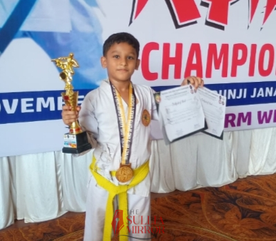 ಪುತ್ತೂರು: ಸುಳ್ಯದಲ್ಲಿ ನಡೆದ ರಾಷ್ಟ್ರಮಟ್ಟದ ಕರಾಟೆ ಸ್ಪರ್ಧೆ 2025ರಲ್ಲಿ ಪುತ್ತೂರು ಸೈಂಟ್ ವಿಕ್ಟರ್ಸ್ ಆಂಗ್ಲ ಮಾಧ್ಯಮ ಶಾಲೆಯ 2ನೇ ತರಗತಿಯ ವಿದ್ಯಾರ್ಥಿ ಅದ್ವೈತ್ ಕೃಷ್ಣ ಎ.ಕೆ ಹಳದಿ ಬೆಲ್ಟ್ ವಿಭಾಗದ 7 -8 ವರ್ಷ ವಯೋಮಿತಿಯ ಬಾಲಕರ ವಿಭಾಗದಲ್ಲಿ