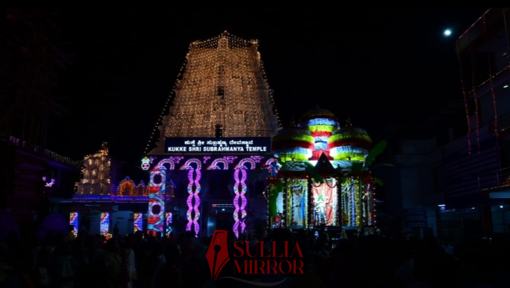 ಸುಬ್ರಹ್ಮಣ್ಯ:ಮಹತೋಭಾರ ಕುಕ್ಕೆ ಶ್ರೀ ಸುಬ್ರಹ್ಮಣ್ಯ ದೇವರ ವಾರ್ಷಿಕ ಚಂಪಾಷಷ್ಠಿ ಜಾತ್ರಾ ಮಹೋತ್ಸವದ ಅಂಗವಾಗಿ ಬುಧವಾರ ರಾತ್ರಿ ವೈಭವದ ಲಕ್ಷದೀಪೋತ್ಸವ ನೆರವೇರಿತು. ಸಾಲು ಸಾಲು ಹಣತೆ ದೀಪಗಳ ನಡುವೆ ಕುಕ್ಕೆ ಸುಬ್ರಹ್ಮಣ್ಯ ದೇವರ ಲಕ್ಷದೀಪೋತ್ಸವವು ಭಕ್ತಿ-ಸಡಗರದಿಂದ ನಡೆಯಿತು. ಚಂದ್ರಮಙಡಲ ರಥದಲ್ಲಿ ಸುಬ್ರಹ್ಮಣ್ಯ ದೇವರ ಉತ್ಸವ ನಡೆಯಿತು.ಶ್ರೀ ದೇವಳದ ಅರ್ಚಕರು ಉತ್ಸವದ ವಿಧಿ ವಿಧಾನ