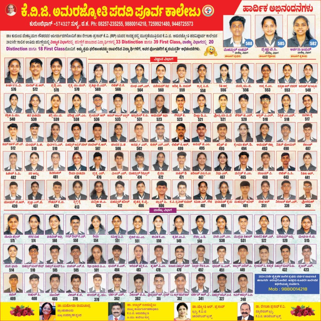 ಸುಳ್ಯದ ಪ್ರತಿಭಾವಂತ ವಿದ್ಯಾರ್ಥಿಗಳು ಪಿಯು ಶಿಕ್ಷಣಕ್ಕಾಗಿ ಅದರೊಂದಿಗೆ ಸ್ಪರ್ಧಾತ್ಮಕ ಪರೀಕ್ಷೆಗಳ ತರಬೇತಿಗಾಗಿ ಪುತ್ತೂರು ಮಂಗಳೂರಿಗೆ ಹೋಗುವ ಅನಿವಾರ್ಯತೆ ಇತ್ತು. ಹೆಚ್ಚಿನ ಆರ್ಥಿಕ ಹೊರೆ ಶ್ರಮದಿಂದಾಗಿ ಉನ್ನತ ತಾಂತ್ರಿಕ, ವೈದ್ಯಕೀಯ ಶಿಕ್ಷಣ ಈ ಭಾಗದ ವಿದ್ಯಾರ್ಥಿಗಳಿಗೆ ಗಗನಕುಸುಮ ಎಂದೆನಿಸಿತ್ತು. 2016 ರ ಜೂನ್ 6 ರಂದು ಕೆವಿಜಿ ಅಮರ ಜ್ಯೋತಿಪದವಿಪೂರ್ವ ಕಾಲೇಜು ಕೆ.ವಿ.ಜಿ ಚಾರಿಟೇಬಲ್ ಟ್ರಸ್ಟ್ ಇದರ ಆಶ್ರಯದಲ್ಲಿ ಸಂಯೋಜಿತ ಪದವಿಪೂರ್ವ ಕಾಲೇಜಾಗಿ ಪ್ರಾರಂಭವಾಯಿತು. ಕೈಗೆ ಎಟಕುವ ಶುಲ್ಕದೊಂದಿಗೆ ಪ್ರಸ್ತುತ ಉನ್ನತ ಶಿಕ್ಷಣಕ್ಕಾಗಿ ಬೇಕಾದಂತಹ ಪೂರ್ವಭಾವಿ ತರಬೇತಿ CET/NEET/JEE/CA Foundation ಇತ್ಯಾದಿ ತರಗತಿಗಳೊಂದಿಗೆ ಪದವಿಪೂರ್ವ ಶಿಕ್ಷಣ ನೀಡುವ ವ್ಯವಸ್ಥೆಯೊಂದಿಗೆ ಕಳೆದ 9 ವರ್ಷಗಳಿಂದ ಕೆವಿಜಿ ಅಮರ ಜ್ಯೋತಿ ಪಿ.ಯು ಕಾಲೇಜು ಸಾಗಿ ಬರುತ್ತಿದೆ. ಸತತ ನೂರು ಶೇಕಡ ಫಲಿತಾಂಶದೊಂದಿಗೆ ಇಲ್ಲಿ ಶಿಕ್ಷಣ ಪಡೆದ ವಿದ್ಯಾರ್ಥಿಗಳು ಉಚಿತ ವೈದ್ಯಕೀಯ ಹಾಗೂ ತಾಂತ್ರಿಕ ಶಿಕ್ಷಣ ಪ್ರವೇಶಾತಿ ಪಡೆದುಕೊಂಡಿರುವುದು ಅಮರ ಜ್ಯೋತಿ ಪಿಯು ಕಾಲೇಜಿನ ವಿಶಿಷ್ಟ ಸಾಧನೆ.