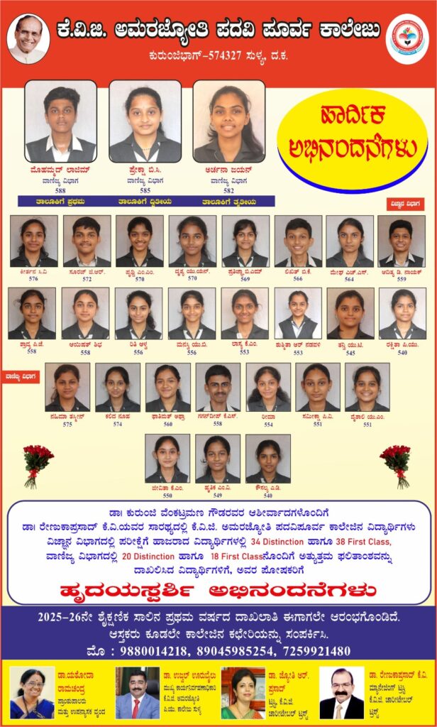 ಆಡಳಿತ ಮಂಡಳಿ ನಿರಂತರವಾಗಿ ಶ್ರಮಿಸುತ್ತಿದೆ. ಹಾಗೂ ತನ್ನ ಸಾಮಾಜಿಕ ಬದ್ಧತೆ ಯನ್ನು ನಿರೂಪಿಸಿದೆ. ಕೆ.ವಿ.ಜಿ ಚಾರಿಟೇಬಲ್ ಟ್ರಸ್ಟ್ ಇದರ ಆಡಳಿತ ಮುಖ್ಯಸ್ಥರಾದ ಡಾ. ರೇಣುಕ ಪ್ರಸಾದ್ ಕೆ ವಿ ನಿರ್ದೇಶಕರಾದ ಡಾಕ್ಟರ್ ಜ್ಯೋತಿ ಆರ್ ಪ್ರಸಾದ್ ಮತ್ತು ಶ್ರೀ ಮೌರ್ಯ ಆರ್ ಕುರುಂಜಿ ಮಾರ್ಗದರ್ಶಕರಾಗಿ ಮುಖ್ಯ ಕಾರ್ಯನಿರ್ವಹಣಾಧಿಕಾರಿ ಡಾ. ಉಜ್ವಲ ಯು ಜೆ ಇವರೆಲ್ಲರ ಅಹರ್ನಿಷಿ ಪ್ರೋತ್ಸಾಹ ಮಾರ್ಗದರ್ಶನದೊಂದಿಗೆ ಕೆ.ವಿ.ಜಿ ಅಮರ ಜ್ಯೋತಿ ಪದವಿ ಪೂರ್ವ ಕಾಲೇಜು, ಸುಳ್ಯ ಶಿಕ್ಷಣ ಕ್ಷೇತ್ರದಲ್ಲಿ ದೃಢ ಹೆಜ್ಜೆಗಳನ್ನು ಇಟ್ಟು ಸಾಗುತ್ತಿದೆ. ವಿದ್ಯಾರ್ಥಿಗಳ ಉಜ್ಜಲ ಭವಿಷ್ಯಕ್ಕೆ ಭದ್ರ ಬುನಾದಿಯನ್ನು ಒದಗಿಸುವಲ್ಲಿ ಸಂಪೂರ್ಣ ಬದ್ಧತೆಯಿಂದ ದುಡಿಯುತ್ತಿರುವ ಕೆವಿಜಿ ಅಮರ ಜ್ಯೋತಿ ಪಿಯು ಕಾಲೇಜು ವಿದ್ಯಾರ್ಥಿಗಳ ಉತ್ತಮ ಆಯ್ಕೆಯಾಗಲಿ.