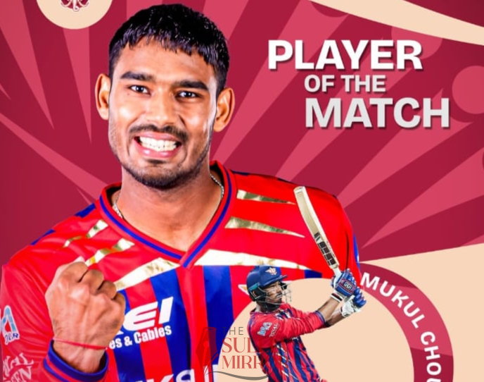 ಕೇವಲ 27 ಎಸೆತಗಳಲ್ಲಿ ಎರಡು ಬೌಂಡರಿ ಹಾಗೂ ಏಳು ಸ್ಪೋಟಕ ಸಿಕ್ಸರ್ ಒಳಗೊಂಡು 54ರನ್ ಚಚ್ಚಿದರು.ಗೆಲುವಿಗೆ ಏಳು ರನ್ಗಳ ಕೊರತೆ ಇರುವಾಗ ಪಂದ್ಯದ ಕೊನೆಯ ಓವರಿನ ಐದನೇ ಎಸೆತವನ್ನು ಮುಕುಲ್ ಸಿಕ್ಸರ್ಗೆ ಅಟ್ಟಿದರು. ಕೊನೆಯ ಎಸೆತದಲ್ಲಿ ಒಂದು ರನ್ ಅಗತ್ಯವಿದ್ದಾಗ ಚೆಂಡು ಬ್ಯಾಟ್ಗೆ ತಾಗದೆ ಇದ್ದರೂ ಫೀಲ್ಡಿಂಗ್ ವೈಫಲ್ಯವನ್ನು ಗಮನಿಸಿದ ಮುಕುಲ್, ಓಟದ ಮೂಲಕ ವಿಜಯದ ರನ್ ಗಳಿಸಿದರು.ಮುಕುಲ್ ಚೌಧರಿ ಪಂದ್ಯಶ್ರೇಷ್ಠ ಪ್ರಶಸ್ತಿ ಪಡೆದರು.