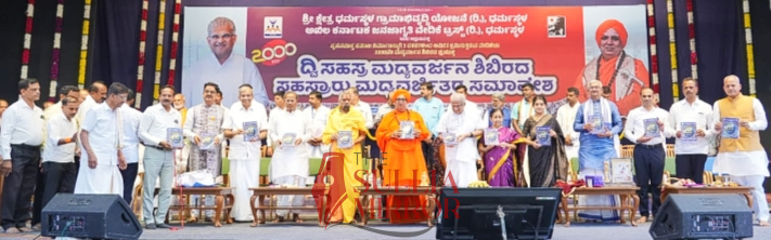 ಸಾವಿರಾರು ಮದ್ಯವರ್ಜಿತರ ಸಮಾವೇಶದಲ್ಲಿ ಆಶೀರ್ವಚನ ನೀಡಿ ಮಾತನಾಡಿದರು.ಧರ್ಮಸ್ಥಳದ ಧರ್ಮಾಧಿಕಾರಿ ಡಿ. ವೀರೇಂದ್ರ ಹೆಗ್ಗಡೆಯವರು ಎಲ್ಲವನ್ನೂ ಮಾತಿನಲ್ಲಿ ಹೇಳದೆ ಕೃತಿ ಮೂಲಕ, ಕಾಯಕದ ಮೂಲಕ ಸಮಾಜದಲ್ಲಿ ಕ್ರಾಂತಿಕಾರಿ ಪರಿವರ್ತನೆ ಮಾಡಿ ತೋರಿಸಿದ್ದಾರೆ.ಜನಸಾಮಾನ್ಯರ ಹೃದಯದಲ್ಲಿ ದೇವರನ್ನು ಕಾಣುವ ಅವರು, ಸೇವೆಯ ಮೂಲಕ ದೇವರ ಸೇವೆಯನ್ನೂ ಮಾಡುತ್ತಿದ್ದಾರೆ ಎಂದು ಹೇಳಿದರು.