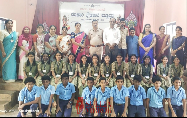 ಸುಳ್ಯ:ಅಜ್ಜಾವರ ಸರಕಾರಿ ಪ್ರೌಢ ಶಾಲೆಯಲ್ಲಿ ಮಕ್ಕಳ ಹಕ್ಕುಗಳು ಮತ್ತು ಕಾನೂನಿನ ಬಗ್ಗೆ ಸುಳ್ಯ ವೃತ್ತ ನಿರೀಕ್ಷಕ ತಿಮ್ಮಪ್ಪ ನಾಯ್ಕ್ ಜೊತೆ ಮಕ್ಕಳ ಸಂವಾದ ಕಾರ್ಯಕ್ರಮ ನಡೆಯಿತು. ಹದಿಹರೆಯದ ಮಕ್ಕಳು ವಾಹನ ಚಾಲನೆ ಮಾಡಬಾರದು, ಮಕ್ಕಳು ವಾಹನ ಚಾಲನೆ ಮಾಡಿದರೆ ಪೋಷಕರಿಗೆ ದಂಡ, ಹಾಗೂ ಶಿಕ್ಷೆ ಆಗುತ್ತದೆ. ಈ ಬಗ್ಗೆ ಮಕ್ಕಳಿಗೆ ಹಾಗೂ
