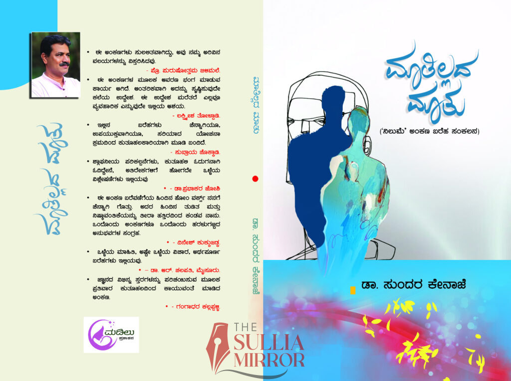 ಸುಳ್ಯ:ಲೇಖಕ, ಸಂಶೋಧಕ ಡಾ.ಸುಂದರ ಕೇನಾಜೆಯವರ ಜನಪ್ರಿಯ ನಿಲುಮೆ ಅಂಕಣ “ಮಾತಿಲ್ಲದ ಮಾತು” ಎಂಬ ಕೃತಿಯಾಗಿ ಇದೇ ಜ.31ರಂದು ಬೆಳಕು ಕಾಣಲಿದೆ. ಈಗಾಗಲೇ ಕನ್ನಡ ಮತ್ತು ತುಳು ಭಾಷೆಯಲ್ಲಿ ಪ್ರಕಟಗೊಂಡಿರುವ ಇವರ ಒಟ್ಟು ಕೃತಿಗಳಲ್ಲಿ ಇಪ್ಪತ್ತ ಮೂರನೇಯ ಕೃತಿಯಾಗಿ ಈ