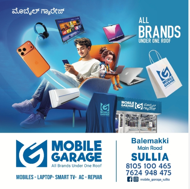 ಸುಳ್ಯದ ಮುಖ್ಯ ರಸ್ತೆಯಲ್ಲಿ ಬಾಳೆಮಕ್ಕಿ ಕಟ್ಟಡದಲ್ಲಿ ಕಾರ್ಯಾಚರಿಸುವ ಮೊಬೈಲ್ ಗ್ಯಾರೇಜ್ ಮಳಿಗೆಯಲ್ಲಿ ಎಲ್ಲಾ ಕಂಪೆನಿಯ ಸ್ಮಾರ್ಟ್ ಫೋನ್, ಮೊಬೈಲ್ ಎಸ್ಸೆಸರೀಸ್ಗಳ ಮತ್ತು ಸ್ಮಾರ್ಟ್ ವಾಚ್ ಖರೀದಿಗೆ ರಿಯಾಯಿತಿ ದರ ಲಭ್ಯವಿದೆ.