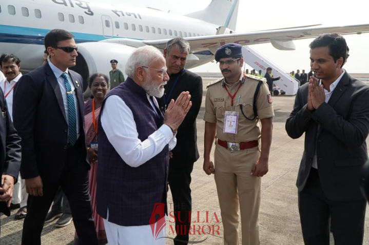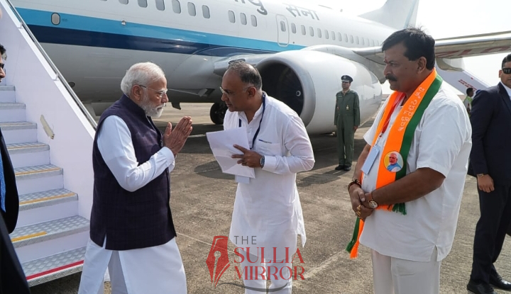 ಮಂಗಳೂರು: ಉಡುಪಿಯಲ್ಲಿ ನಡೆಯುವ ಕಾರ್ಯಕ್ರಮದಲ್ಲಿ ಭಾಗವಹಿಸಲು ಪ್ರಧಾನಮಂತ್ರಿ ನರೇಂದ್ರ ಮೋದಿ ಅವರು ಮಂಗಳೂರು ಅಂತಾರಾಷ್ಟ್ರೀಯ ವಿಮಾನ ನಿಲ್ದಾಣಕ್ಕೆ ಶುಕ್ರವಾರ ಆಗಮಿಸಿದರು.ಬೆಳಿಗ್ಗೆ 10.25ಕ್ಕೆ ಭಾರತೀಯ ವಾಯುಪಡೆ ವಿಮಾನದಲ್ಲಿ ಆಗಮಿಸಿದ ಪ್ರಧಾನಮಂತ್ರಿಗಳನ್ನು, ರಾಜ್ಯ ಸರಕಾರದ ಪರವಾಗಿ