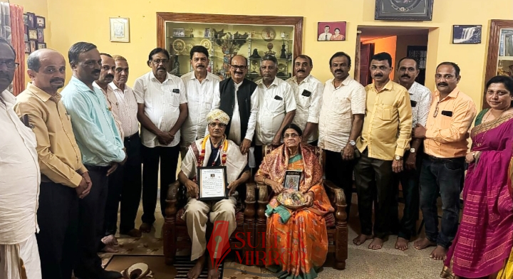 ಸುಳ್ಯ:ಶಿಕ್ಷಕರ ದಿನಾಚರಣೆಯ ಪ್ರಯುಕ್ತ ಸುಳ್ಯ ನೆಹರೂ ಸ್ಮಾರಕ ಮಹಾ ವಿದ್ಯಾಲಯದ ಹಿರಿಯ ವಿದ್ಯಾರ್ಥಿಗಳಿಂದ ಶಿಷ್ಯರ ನಡೆ ಗುರುಗಳ ಕಡೆ ಕಾರ್ಯಕ್ರಮದಲ್ಲಿ ನಿವೃತ್ತ ಉಪನ್ಯಾಸಕ ಪ್ರೊ. ನಿಂಗೇಗೌಡ ಅವರನ್ನು ಸುಳ್ಯ ಹಳೆಗೇಟಿನ ಅವರ ನಿವಾಸದಲ್ಲಿ ಸನ್ಮಾನಿಸಲಾಯಿತು.