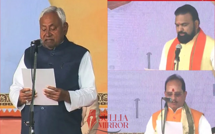 ಪಟ್ನಾ:ಜೆಡಿಯು ಮುಖ್ಯಸ್ಥ ನಿತೀಶ್ ಕುಮಾರ್ ಅವರು 10ನೇ ಬಾರಿಗೆ ಬಿಹಾರದ ಮುಖ್ಯಮಂತ್ರಿಯಾಗಿ ಗುರುವಾರ ಪ್ರಮಾಣ ವಚನ ಸ್ವೀಕರಿಸಿದ್ದಾರೆ.ಪಟ್ನಾದ ಗಾಂಧಿ ಮೈದಾನದಲ್ಲಿ ನಡೆದ ಸಮಾರಂಭದಲ್ಲಿ ರಾಜ್ಯಪಾಲ ಮೊಹಮ್ಮದ್ ಆರಿಫ್ ಖಾನ್ ಅವರು ನಿತೀಶ್ ಕುಮಾರ್ ಅವರಿಗೆ ಪ್ರಮಾಣವಚನ ಬೋಧಿಸಿದರು.ಪ್ರಧಾನಿ ನರೇಂದ್ರ ಮೋದಿ, ಗೃಹ ಸಚಿವ ಅಮಿತ್ ಶಾ, ಕೇಂದ್ರ ಸಚಿವರು ಹಾಗೂ