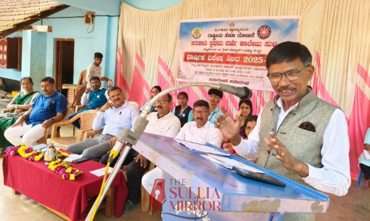 ಮಂಡೆಕೋಲಿನಲ್ಲಿ ನಡೆದ ಸುಳ್ಯ ಸರಕಾರಿ ಪ್ರಥಮ ದರ್ಜೆ ಕಾಲೇಜಿನ ಎನ್ಎಸ್ಎಸ್ ವಾರ್ಷಿಕ ವಿಶೇಷ ಶಿಬಿರದ ಸಮಾರೋಪ ಸಮಾರಂಭದಲ್ಲಿ ಮಾತನಾಡಿದರು.