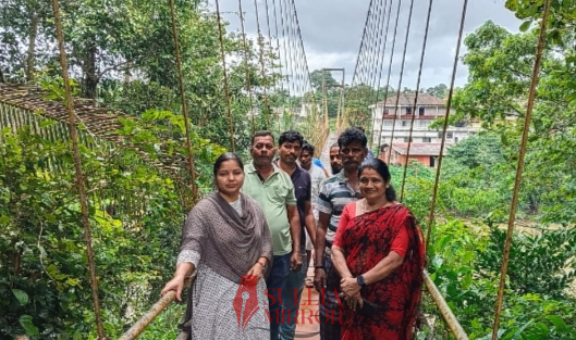 2006 ರಲ್ಲಿ ಇನ್ಫೋಸಿಸ್ ಮತ್ತು ರೋಟರಿ ವತಿಯಿಂದ ನಿರ್ಮಿಸಲಾಗಿದ್ದು ಬಳಿಕ ತೂಗುಸೇತುವೆ ನಿರ್ವಹಣೆ ಕೊರತೆಯಿಂದ ತೂಗುಸೇತುವೆಯ ಉಪಕರಣಗಳು ತುಕ್ಕು ಹಿಡಿದು ಶಿಥಿಲಾವಸ್ಥೆಗೊಂಡಿತ್ತು. ಇತ್ತೀಚೆಗೆ ಬಾರೀ ಮಳೆಯ ಸಂದರ್ಭದಲ್ಲಿ ತೂಗು ಸೇತುವೆ ಶಿಥಿಲಗೊಂಡ ಹಿನ್ನಲೆಯಲ್ಲಿ ತೂಗುಸೇತುವೆಯ ದುರಸ್ತಿಗೆ 10 ಲಕ್ಷ ಅನುದಾನ ಮಂಜೂರುಗೊಂಡಿತ್ತು. ಅದರಂತೆ ಮಂಗಳವಾರದಿಂದ ತೂಗುಸೇತುವೆಯ ದುರಸ್ತಿ ಕಾರ್ಯ ಆರಂಭಗೊಂಡಿದೆ. ತೂಗುಸೇತುವೆಯ
