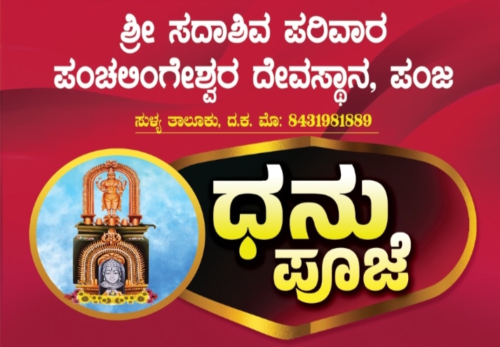 ಪಂಜ:ಪಂಜ ಶ್ರೀ ಸದಾಶಿವ ಪರಿವಾರ ಪಂಚಲಿಂಗೇಶ್ವರ ದೇವಸ್ಥಾನದದಲ್ಲಿ ಡಿ.16ರಿಂದ ಜ. 14 ತನಕ ಧನುಪೂಜೆ ನೆರವೇರಲಿದೆ.ಪ್ರಾತಃ ಕಾಲ 5.30ಕ್ಕೆ ಸರಿಯಾಗಿ