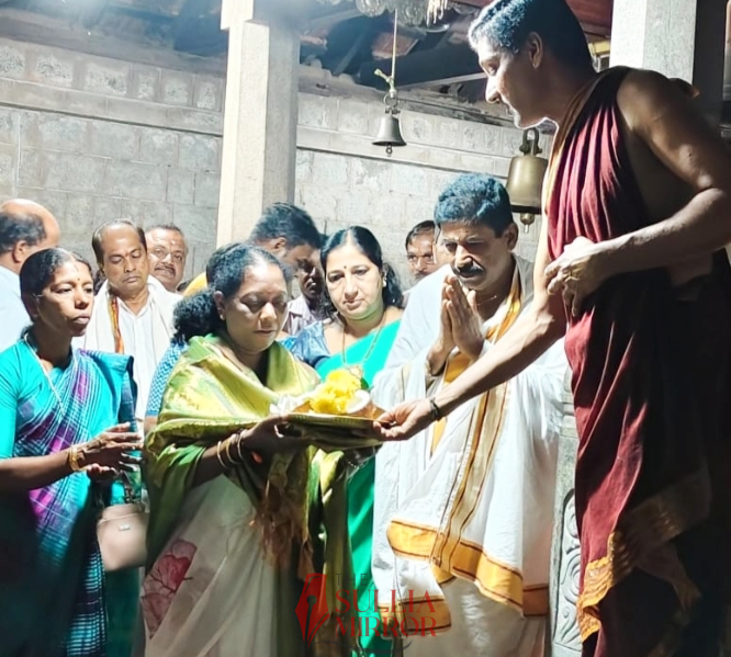 ಪಂಜ:ಪಂಜ ಶ್ರೀ ಸದಾಶಿವ ಪರಿವಾರ ಪಂಚಲಿಂಗೇಶ್ವರ ದೇಗುಲಕ್ಕೆ ಇಂದು ಭೇಟಿ ನೀಡಿದ ಶಾಸಕಿ ಭಾಗೀರಥಿ ಮುರುಳ್ಯ ಧನು ಪೂಜೆಯಲ್ಲಿ ಭಾಗವಹಿಸಿ ಧನು ಪೂಜೆಯ ವಿಶೇಷ ಪ್ರಸಾದ ಸ್ವೀಕರಿಸಿದರು. ದೇಗುಲದ
