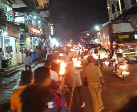 ಸುಳ್ಯ: ವಿಶ್ವ ಹಿಂದೂ ಪರಿಷತ್, ಬಜರಂಗದಳ, ಮಾತೃಶಕ್ತಿ, ದುರ್ಗಾವಾಹಿನಿ ಸುಳ್ಯ ನಗರ ಹಾಗೂ ಸುಳ್ಯ ಪ್ರಖಂಡದ ನೇತೃತ್ವದಲ್ಲಿ ಅಖಂಡ ಭಾರತ ಸಂಕಲ್ಪ ದಿನಾಚರಣೆಯನ್ನು ಆ.14ರಂದು ಆಚರಿಸಲಾಯಿತು. ಇದರ ಅಂಗವಾಗಿ ಸುಳ್ಯ ನಗರದಲ್ಲಿ ಬೃಹತ್ ಪಂಜಿನ ಮೆರವಣಿಗೆ ನಡೆಯಿತು. ಸುಳ್ಯದ ಶಾಸ್ತ್ರಿ ವೃತ್ತದಿಂದ ಆರಂಭಗೊಂಡ