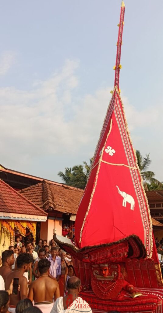 ಸುಳ್ಯ:ಪೆರಾಜೆ ಶ್ರೀಶಾಸ್ತಾವು ದೇವಸ್ಥಾನದಲ್ಲಿ ಶ್ರೀ ಭಗವತಿಯ ದೊಡ್ಡಮುಡಿ ವೈಭವ.ಭಕ್ತಿ ಸಂಭ್ರಮದಲ್ಲಿ ನಡೆದ ಉತ್ಸವಕ್ಕೆ ಸಾವಿರಾರು ಮಂದಿ ಸಾಕ್ಷಿಯಾಗಿ ದೊಡ್ಡ ಮುಡಿಯ ದರ್ಶನ ಪಡೆದರು. ದೊಡ್ಡಮುಡಿಯ ವೈಭವನ್ನು ಕಣ್ತುಂಬಿಕೊಳ್ಳಲು ಕೇರಳ, ಕರ್ನಾಟಕ ರಾಜ್ಯಗಳಿಂದ ಆಗಮಿಸಿ ಕಾತರದಿಂದ ಕಾದಿದ್ದ ಸಾವಿರಾರು ಮಂದಿ ಭಕ್ತರಿಗೆ ದರ್ಶನ ನೀಡಿದ ಭಗವತಿಯು