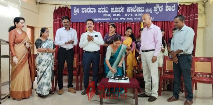 ಸುಳ್ಯ:ಸುಳ್ಯದ ಶ್ರೀ ಶಾರದಾ ಪದವಿಪೂರ್ವ ಕಾಲೇಜಿನಲ್ಲಿ ದ್ವಿತೀಯ ಪಿಯುಸಿ ವಿದ್ಯಾರ್ಥಿಗಳಿಗೆ ಬೀಳ್ಕೊಡುಗೆ ಸಮಾರಂಭ ನಡೆಯಿತು.ಕಾಲೇಜಿನ ಪ್ರಾಂಶುಪಾಲೆ ದಯಾಮಣಿ.ಕೆ ಸಮಾರಂಭದ ಅಧ್ಯಕ್ಷತೆಯನ್ನು ವಹಿಸಿದರು. ಈ ಸಂದರ್ಭದಲ್ಲಿ ವಿದ್ಯಾರ್ಥಿಗಳು ವಿದ್ಯಾರತ್ನ ಪ್ರಶಸ್ತಿಗೆ ಬಾಜನರಾದ ದಯಾಮಣಿ ಅವರನ್ನು
