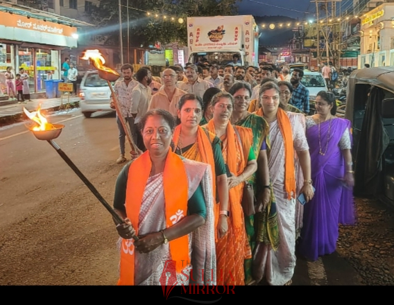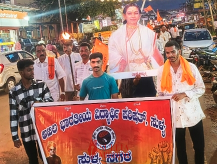 ಪಂಜಿನ ಮೆರವಣಿಗೆ ನಡೆಯಿತು. ಸುಳ್ಯ ಗಾಂಧಿನಗರದದಿಂದ ಆರಂಭಗೊಂಡ ಪಂಜಿನ ಮೆರವಣಿಗೆಯಲ್ಲಿ ಪ್ರಮುಖರು ಹಾಗೂ ನೂರಾರು ಮಂದಿ ಎಬಿವಿಪಿ ಕಾರ್ಯಕರ್ತರು ಭಾಗವಹಿಸಿದ್ದರು.ಬಳಿಕ ಜ್ಯೋತಿ ವೃತ್ತದಲ್ಲಿ ನಡೆದ ಸಭಾ ಕಾರ್ಯಕ್ರಮದಲ್ಲಿ ದಿಕ್ಸೂಚಿ ಭಾಷಣ ಮಾಡಿದ ಎಬಿವಿಪಿ ಮಂಗಳೂರು ವಿಭಾಗ ಪ್ರಮುಖ್ ಕೇಶವ ಬಂಗೇರ’ ಮಾತನಾಡಿ 500 ವರ್ಷದ ಹಿಂದೆ ಪರಕೀಯರ ವಿರುದ್ಧ ಹೋರಾಟ ಮಾಡಿದ ವೀರ ವನಿತೆ ರಾಣಿ ಅಬ್ಬಕ್ಕ ಅವರ ವೀರ ಚರಿತ್ರೆ ಎಲ್ಲರಿಗೂ ಪರಿಚಯವಾಗಬೇಕು.