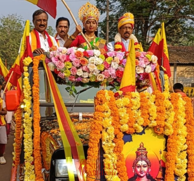 ಕನ್ನಡ ಭುವನೇಶ್ವರಿಯ ವೈಭವದ ಮೆರವಣಿಗೆ ನಡೆಯಿತು. ತಹಶೀಲ್ದಾರ್ ಎಂ.ಮಂಜುಳ ಮೆರವಣಿಗೆಗೆ ಚಾಲನೆ ನೀಡಿದರು. ಸಮ್ಮೇಳನದ ಸಾಹಿತ್ಯ ಸಮ್ಮೇಳನದ ಅಧ್ಯಕ್ಷ, ಸಾಹಿತಿ ಕೆ.ಆರ್.ತೇಜಕುಮಾರ್ ಬಡ್ಡಡ್ಕ ಅವರನ್ನು ಆಕರ್ಷಕ ವಾಹನ ಮೆರವಣಿಗೆಯಲ್ಲಿ ಕರೆ ತರಲಾಯಿತು.