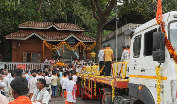 ಧರ್ಮಸ್ಥಳ: ಪಜಿರಡ್ಕದಲ್ಲಿ ಶ್ರೀ ಸದಾಶಿವೇಶ್ವರ ದೇವಸ್ಥಾನದಲ್ಲಿ ಇಂದು (ಶುಕ್ರವಾರ) ಪ್ರತಿಷ್ಠಾಪನೆಗೊಳ್ಳಲಿರುವ ನೂತನ ಶಿಲಾಮಯ ಧ್ವಜಸ್ತಂಭ ಗುರುವಾರ ಸಂಜೆ ಧರ್ಮಸ್ಥಳಕ್ಕೆ ಆಗಮಿಸಿದಾಗ ಭವ್ಯ ಮೆರವಣಿಗೆಯಲ್ಲಿ ಸ್ವಾಗತಿಸಿ, ಅಣ್ಣಪ್ಪಸ್ವಾಮಿ ಬೆಟ್ಟದ ಬಳಿ ತರಲಾಯಿತು.ಮುಖ್ಯ ಪ್ರವೇಶದ್ವಾರದ ಬಳಿ ದೇವಸ್ಥಾನದ