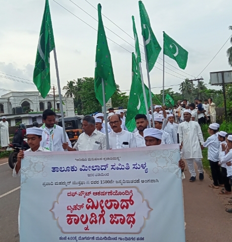 ಸುಳ್ಯ ತಾಲೂಕು ಮೀಲಾದ್ ಸಮಿತಿ ವತಿಯಿಂದ ವರ್ಷಂ ಪ್ರತಿ ಆಚರಿಸಿಕೊಂಡು ಬರುತ್ತಿರುವ ಮಿಲಾದ್ ಕಾಲ್ನಡಿಗೆ ಜಾಥಾ ಮತ್ತು ‘ಅರಿಯಿರಿ ಮನುಕುಲದ ಪ್ರವಾದಿಯನ್ನ’ ಪ್ರವಾದಿ ಸಂದೇಶ ಜಾಥಾ ಹಮ್ಮಿಕೊಳ್ಳಲಾಗಿತ್ತು.