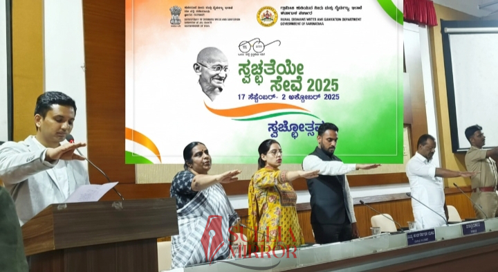 ಮಂಗಳೂರು: ಗ್ರಾಮಗಳಲ್ಲಿ ಸಂಪೂರ್ಣ ನೈರ್ಮಲ್ಯ ಕಾಪಾಡುವ ನಿಟ್ಟಿನಲ್ಲಿ ಸ್ವಚ್ಛತೆಯೇ ಸೇವೆ ಆಂದೋಲನವನ್ನು ದೇಶದೆಲ್ಲೆಡೆ ಆಚರಿಸಲಾಗುತ್ತಿದ್ದು,ಈ ಅಂಗವಾಗಿ 15 ದಿವಸಗಳ ಕಾಲ ಜಿಲ್ಲೆಯಾದ್ಯಂತ ಸ್ವಚ್ಚತಾ ಜಾಥ, ರ್ಯಾಲಿ, ಶ್ರಮದಾನ ಕಾರ್ಯಕ್ರಮ ಸಂಘಟಿಸುವಂತೆ ಜಿಲ್ಲಾಧಿಕಾರಿ ದರ್ಶನ ಹೆಚ್.ವಿ ಕರೆ ನೀಡಿದರು.ಅವರು ದ.ಕ. ಜಿಲ್ಲಾ ಪಂಚಾಯತ್ ನೇತ್ರಾವತಿ ಸಭಾಂಗಣದಲ್ಲಿ ನಡೆದ