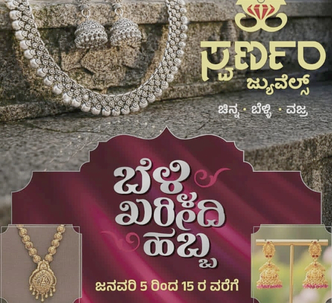 ಜನವರಿ 5 ರಿಂದ ಜ.15 ರವರೆಗೆ ಬೆಳ್ಳಿ ಖರೀದಿ ಹಬ್ಬ ನಡೆಯಲಿದ್ದು, ಪ್ರತೀ ಬೆಳ್ಳಿ ಆಭರಣಗಳ ಮೇಲೆ 20% ರವರೆಗೆ ರಿಯಾಯಿತಿ ನೀಡಲಾಗುತ್ತಿದೆ. ಅಲ್ಲದೇ ಸಿಲ್ವರ್ ಎಕ್ಸೇಂಜ್ ಆಫರ್ ಇದ್ದು ಹಳೆಯ ಬೆಳ್ಳಿ ಆಭರಣಗಳನ್ನು ಎಕ್ಸ್ಚೇಂಜ್ ಮಾಡಿ ಹೊಸ ಆಭರಣಗಳನ್ನು ಖರೀದಿಸಲು ಉತ್ತಮ ಅವಕಾಶವನ್ನು ಸ್ವರ್ಣಂ ಜ್ಯುವೆಲ್ಸ್ ಗ್ರಾಹಕರಿಗೆ ನೀಡಿದೆ.