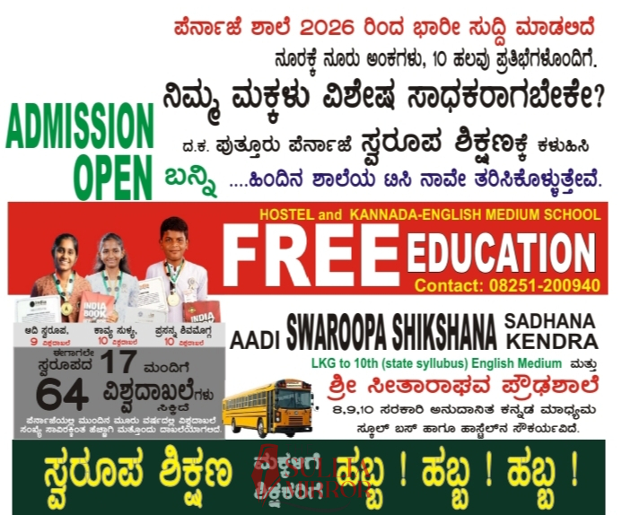 ಸುಳ್ಯ:ನಿಮ್ಮ ಮಕ್ಕಳು ವಿಶೇಷ ಸಾಧಕರನ್ನಾಗಿ ಮಾಡಲು ಇಚ್ಚಿಸುತ್ತೀರಾ..? ಹಾಗಾದರೆ ಶಿಕ್ಷಣವನ್ನು ಹಬ್ಬದಂತೆ ಆಚರಿಸುವ ಸ್ವರೂಪ ಶಿಕ್ಷಣ ಸಂಸ್ಥೆ ನಿಮ್ಮನ್ನು ಸ್ವಾಗತಿಸುತಿದೆ..! ಶೈಕ್ಷಣಿಕ ಕ್ಷೇತ್ರದ ಅನನ್ಯ ಸಾಧನೆ ಬಯಸುವ ಎಳೆಯ ಮನಸ್ಸುಗಳಿಗಾಗಿ ಪುತ್ತೂರು ಪೆರ್ನಾಜೆಯ ಸ್ವರೂಪ ಶಿಕ್ಷಣ ಸಂಸ್ಥೆಯಲ್ಲಿ ಪ್ರವೇಶಾತಿ ಆರಂಭಗೊಂಡಿದೆ.ನೂರಕ್ಕೆ ನೂರು ಅಂಕಗಳು, 10 ಹಲವು ಪ್ರತಿಭೆಗಳೊಂದಿಗೆ. ಮಕ್ಕಳನ್ನು ಸಾಧನೆಯ ಉತ್ತುಂಗಕ್ಕೇರುವ ಧ್ಯೇಯದೊಂದಿಗೆ ಸ್ವರೂಪ ಶಿಕ್ಷಣ ಕೇಂದ್ರದ ನೇತೃತ್ವದಲ್ಲಿ ದಕ್ಷಿಣ ಕನ್ನಡದ