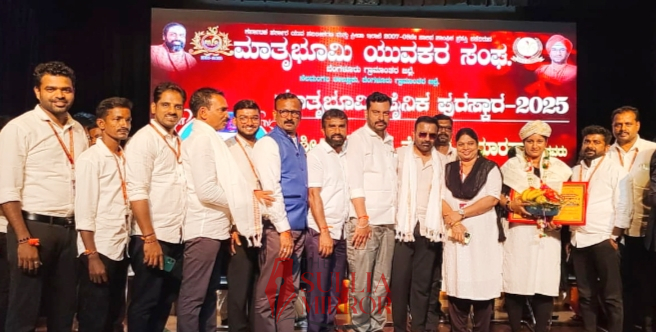 ಬೆಂಗಳೂರು: ಬೆಂಗಳೂರಿನ ನೆಲಮಂಗಲದ ಮಾತೃಭೂಮಿ ಯುವ ಸಂಘ ಇದರ 30 ನೇ ವರ್ಷದ ಸಂಭ್ರಮದ ಅಂಗವಾಗಿ ಕೊಡಮಾಡುವ ರಾಜ್ಯ ಮಟ್ಟದ ಮಾತೃಭೂಮಿ ಸಾಂಘಿಕ ಪ್ರಶಸ್ತಿಗೆ ಸುಳ್ಯದ ಯುವಜನ ಸಂಯುಕ್ತ ಮಂಡಳಿ ಭಾಜನವಾಗಿದೆ. ಸೆ.13ರಂದು ಬೆಂಗಳೂರಿನ ನೆಲಮಂಗಲದಲ್ಲಿ ನಡೆದ ಸಮಾರಂಭದಲ್ಲಿ ಪ್ರಶಸ್ತಿ ಪ್ರದಾನ ಮಾಡಲಾಯಿತು.ಸುಳ್ಯ ಯುವಜನ ಸಂಯುಕ್ತ ಮಂಡಳಿ ಕಾರ್ಯದರ್ಶಿ ನಮಿತಾ ಹರ್ಲಡ್ಕ ಪ್ರಶಸ್ತಿ ಸ್ವೀಕರಿಸಿದರು. ಕಾರ್ಮಿಕ ಸಚಿವರಾದ